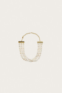 Straight from the sea, no two are alike. The Nora Choker is the perfect accessory to level up your look. This stunning 100% freshwater pearl choker can be worn casually with a simple tee or accessorized with your favorite Cult Gaia gown. SIZE & FIT NOTES 3 rows of 10MM Keshi pearls 15MM lobster clasp closure Fully adjustable Fragile - do not pull COMPOSITION AND CARE Weight: 144 g Body: 100% Freshwater Pearls Trim: 100% Brass 15.5" x 1.5"