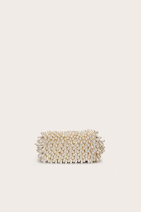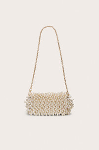 An eye-catching shoulder bag shrouded in faux pearls. — Removable chain strap — Real leather — Faux pearl detailing — Gold hardware SIZE & FIT NOTES 3.94" W x 5.12" H x 10.04" L COMPOSITION AND CARE 100% SHEEP LEATHER, 100% ABS PEARLS; 100% POLYESTER, 100% ZINC ALLOY