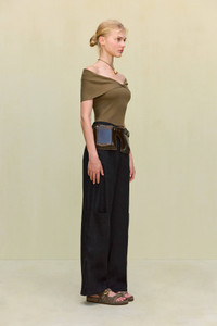 A versatile knit top in sponge yarn featuring a neckline that can be worn on or off the shoulder. — Full length — Easy knit top — Can be worn on or off the shoulder — Sponge yarn COMPOSITION AND CARE 79% VISCOSE 21% NYLON