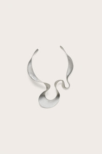 Preorder - Estimated Ship Date Between November 25th and December 9th A slim, ribbon-like choker designed from antique silver-tone brass wraps around the neck. — Objet d'art — Antique finished brass — Open collar silhouette SIZE & FIT NOTES 1" W x 8" H x 6" L COMPOSITION AND CARE 100% BRASS