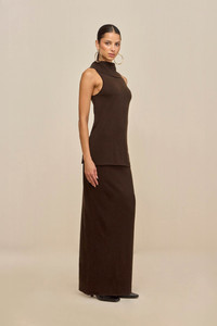 A luxurious merino knit tunic top with a relaxed fit and mock neck. — Tunic silhouette — Merino blend yarn — Mock neckline — Wear as a set with the Nadine Skirt SIZE & FIT NOTES Model is 5'10" and wearing a size Small COMPOSITION AND CARE 30% WOOL, 25% NYLON, 45% ACRYLIC Dry Clean Only