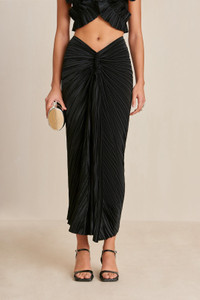 The Sonoma Skirt is a textured masterpiece. This ankle-length skirt features an asymmetrical waistline. The pleated satin fabric adds more texture and shine to the bundling of fabric at the high-hip. Meant to be, the Sonoma Skirt was designed to pair with the coordinating Adilia Top. SIZE & FIT NOTES Model is 5'10" and is wearing a size Small COMPOSITION AND CARE 100% POLYESTER