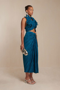 The Sonoma Skirt is a textured masterpiece. This ankle-length skirt features an asymmetrical waistline. The pleated satin fabric in Seamoss adds more texture and shine to the bundling of fabric at the high-hip. Meant to be, the Sonoma Skirt was designed to pair with the coordinating Adilia Top. SIZE & FIT NOTES p.p1 {margin: 0.0px 0.0px 0.0px 0.0px; font: 13.0px 'Helvetica Neue'} Model is 5'9" and is wearing a size Small COMPOSITION AND CARE 100% Polyester