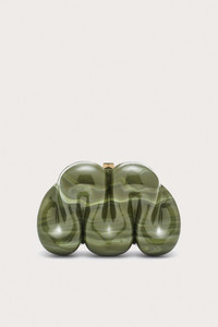 A playful acrylic clutch resembling a sculptural squiggle with a removable chain strap. — Marbled acrylic — Removable strap — Gold toned hardware — Concealable strap ears — Can fit an iPhone SIZE & FIT NOTES 3" W x .51" H x 8.46" L COMPOSITION AND CARE 100% ACRYLIC; HW: 100% ZINC ALLOY Wipe acrylic gently with a dry microfiber cloth, using plain water or mild soap for deeper cleaning. Dry immediately and avoid harsh cleaners or abrasives. Handle with care.