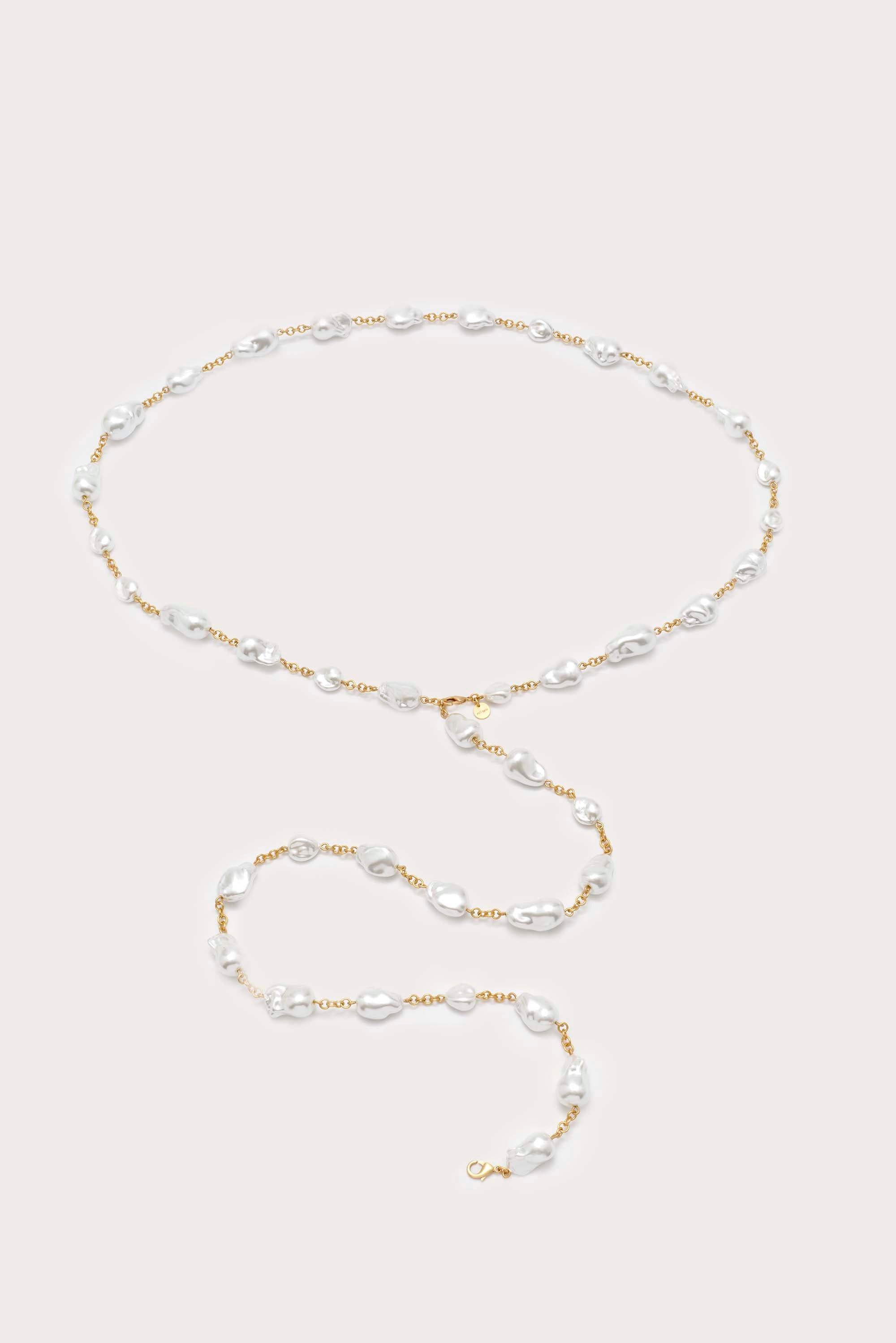 An eye catching belt crafted out of irregularly shaped faux pearls. — Gold toned hardware — Faux pearls — Clasp closure — Can also be worn as a necklace SIZE & FIT NOTES 59.1" L COMPOSITION AND CARE 100% FAUX PLASTIC PEARLS, 100% BRASS PLATED METAL Spot clean with microfiber cloth. Avoid contact with liquids to prevent tarnishing.