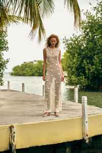 Preorder - Estimated Ship Date is Between June 2nd and June 16th A floor-length knit dress that doubles as a coverup, adorned with intricate crochet flowers throughout. — Sheer — Off white knit yarn — Acts as a coverup — Crochet flower details SIZE & FIT NOTES Model is 5'10" and wearing a size S COMPOSITION AND CARE 60% VISCOSE 40% POLYETHYLENE TEREPHTHALATE
