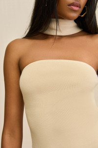 A versatile strapless knit that can be worn two ways: as a choker top or a halter top with a knot front detail. — Convertible top — Choker or halter neckline — Knit fabrication — Strapless SIZE & FIT NOTES Model is 5'10" and wearing a size Small COMPOSITION AND CARE 79% VISCOSE 21% NYLON