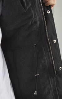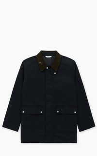 The Country Jacket is inspired by british countryside jackets. 3sixteen updated the fabric selection to have a waxed nylon shell with cotton flannel body lining and cupro sleeve lining. The jacket features an interior waist cinch, throat latch, and corduroy collar and cuff lining. It's finished off with nickel hardware. - Style: Country Jacket - Fit: Regular fit - Color: Black - Material: 100% nylon - Lining: 100% cotton - Sleeve lining: 100% cupro - Made of waxed nylon - Flannel body lining - Interior waist cinch - Throat latch - Corduroy collar - Nickel hardware Our model is 192cm, 89kg - wears size L