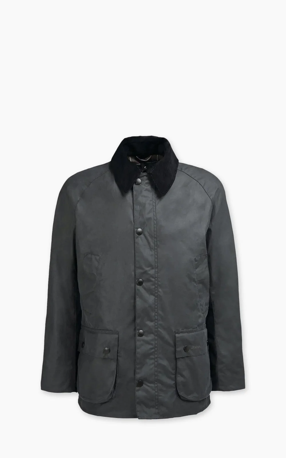The Ashby wax jacket is a refined, practical winter version of the modern Engineered Bedale jacket with a durable waxed finish. This comfortable model, featuring a worn look, is made from signature 6oz waxed cotton and has a matte finish. Slightly more fitted than the Bedale, the jacket still offers enough room for winter layering and impresses with classic features such as a wind flap with sturdy press-studs, an elegant corduroy turn-down collar with storm flap, slanted handwarmer pockets, and two spacious bellows pockets. The lining and inner pockets are adorned with the authentic Original Classic Tartan pattern, paying homage to Scottish heritage. The functional jacket is available in four classic colors and features a zipper closure. It can optionally be combined with a zip-in inner jacket, providing versatility for everyday wear. - Style: Ashby Wax Jacket - Fit: Slim fit - Color: Grey - Material: 100% Waxed cotton (Sylkoil) - Lining: 100% cotton - 6oz sylkoil quality - Lining with tartan pattern - Sleeve lining and drip protection - Inside pocket - Bellows pockets - 2-way zipper - Logo embroidery - Corduroy collar - Made in EU Our model is 183cm, 75kg