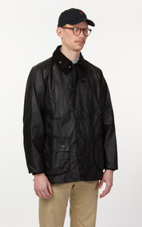 The Bedale is made of waxed cotton in 6oz quality (Sylkoil) and was first launched in 1980 on the market. Characteristic elements such as a 2-way zipper with snap closure, two large bellows pockets and two Moleskin-lined slash pockets and the cord collar give the jacket an unmistakable look. Characteristic for the Bedale Jacket are the slightly shorter cut and the rib knit cuffs in the sleeve ends. Even today, the waxed cotton jacket is manufactured at the company's own production facility in South Shields, northeastern England. The jacket can be supplemented by a warming lining and a hood. - Style: Bedale - Fit: Regular fit - Color: Black - Material: 100% 6oz Waxed Cotton - Lining: 100% cotton - Rib knit cuffs in the sleeve ends - 2-way zipper - Corduroy collar - French pockets - Patch pockets - Snap buttons on the collar for buttoning a hood - Zip on the inside for zip-in lining - Made in UK Our model is 190cm, 75kg – wears size 42/L Sizing: 30-32 = XS 34-36 = S 38-40 = M 42-44 = L 46-48 = XL 50-52 = XXL