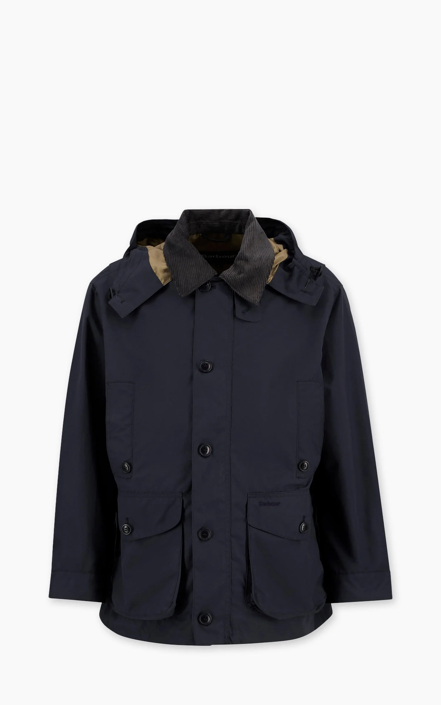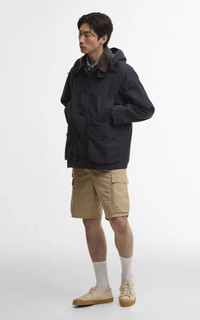 Inspired by a classic archive piece, the Barbour Ventile Endurance Showerproof Jacket is reimagined for modern life. Crafted from 100% premium Ventile cotton, this jacket is both breathable and weather-resistant. It features a detachable hood for versatility, alongside signature lower bellow pockets and handwarmers. The oversized fit provides a contemporary silhouette and ample room for comfortable layering. - Style: Ventile Endurance Showerproof Jacket - Fit: Relaxed fit - Color: Navy - Material: 100% cotton - Inner: 100% cotton - Made from 100% premium Ventile cotton - Breathable and weather-resistant - Detachable hood - Signature lower bellow pockets and handwarmers - Barbour embroidery to the wearers front left pocket flap - Made in EU Our model is 192cm, 89kg - wears size L