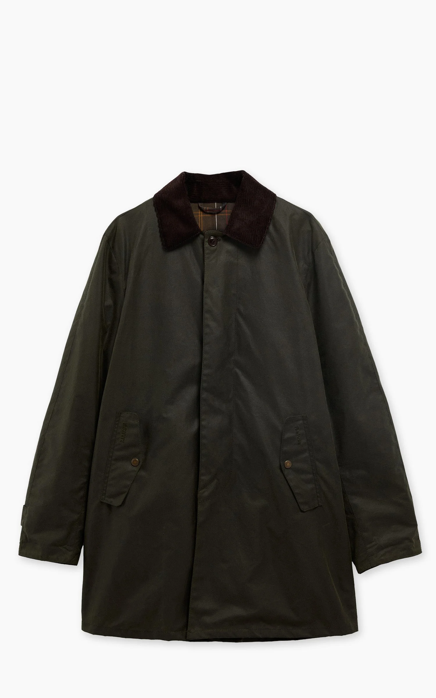 In a seamless synergy of the two brands, the Barbour x Baracuta collaboration unites iconic Baracuta silhouettes with Barbour’s deep-rooted heritage, blending timeless British style and classic functionality. New to the collaboration, the Barbour x Baracuta Tyne Waxed Coat is inspired by Baracuta’s classic G10. This car coat is crafted from 6oz Sylk oil-waxed cotton and features an 8-wale cord collar, combining durability with timeless style. Designed with set-in front sleeves, a raglan back, and Baracuta’s signature umbrella back yoke, it offers practical protection for wet weather while maintaining a refined silhouette. - Style: Car Coat Tyne Waxed - Fit: Regular fit - Color: Archive Olive - Material: 100% cotton (waxed) - Lining: 100% cotton - Barbour x Baracuta collaboration - 2 side pockets - Made in EU Our model is 187cm, 85kg – wears size L