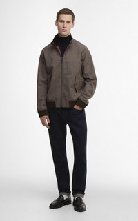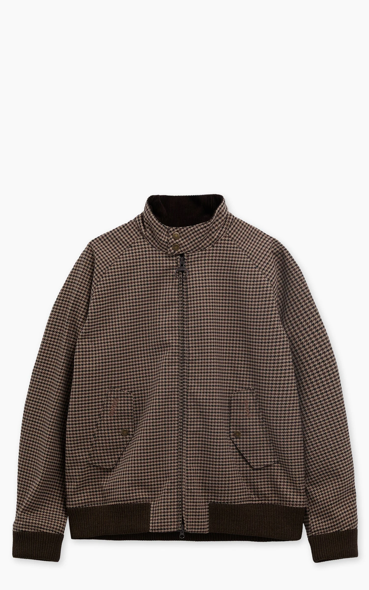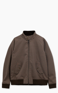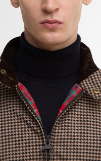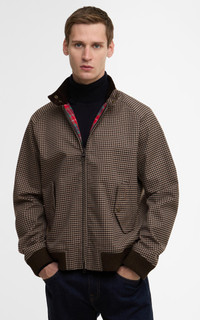 In a seamless synergy of the two brands, the Barbour x Baracuta collaboration unites iconic Baracuta silhouettes with Barbour’s deep-rooted heritage, blending timeless British style and classic functionality. The Barbour x Baracuta Porton Showerproof Jacket draws inspiration from Baracuta’s iconic G9 Harrington Jacket, crafted in the UK since 1938. Designed with Barbour’s signature functionality, it features showerproof and windproof qualities, a bold houndstooth check on the exterior, and a 9-wale cord collar. The jacket is completed with a contrasting dual-branded lining, combining Barbour’s classic tartan with Baracuta’s vibrant Fraser Tartan, merging the heritage that continues to inspire both brands. - Style: Jacket Porton Showerproof - Fit: Regular fit - Color: Brown Houndstooth - Material: 100% cotton - Barbour x Baracuta collaboration - Ribbed cuffs - 2 front pockets - Made in EU Model is 183cm - wears size M