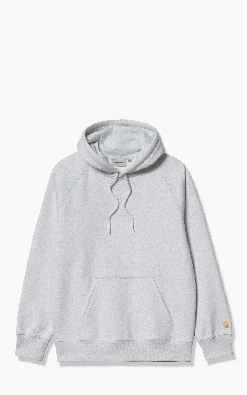 The Hooded Chase Sweat is a heavyweight sweatshirt, constructed from a cotton-poly blend jersey. It is part of the Chase Program, which focuses on jersey-based staples, and features an embroidered Carhartt ‘C’ motif on the left sleeve. Ribbed cuffs and hem. Regular fit. - Style: Hooded Chase Sweat - Fit: Regular fit - Color: Grey/Gold - Material: 58% cotton, 42% polyester - Classic hooded sweatshirt - Brushed fabric - Flatlock stitching - Raglan sleeves - Logo embroidery on sleeve Our model is 182cm, 68kg - wears size M