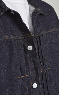 This 13.5oz selvedge denim is crafted from high-quality San Joaquin cotton - sourced from one of the most historic cotton-growing regions in the U.S. and spun using a specialized method. Dyed with pure indigo and featuring natural neps, it is slowly woven at low tension on vintage looms, resulting in a richly textured, uneven finish full of character. - Style: Denim Tracker 1P Jacket - Fit: Loose fit - Color: Indigo - Material: 100% cotton - Made of 13.5oz selvedge denim - San Joaquin cotton - Washed once - Dyed in pure indigo with natural neps - Special spinning method with high quality cotton - Dead stock fabric - Low-tension weaving on an old-style looms - Made in Japan Our model is 192cm, 89kg - wears size 4/XL