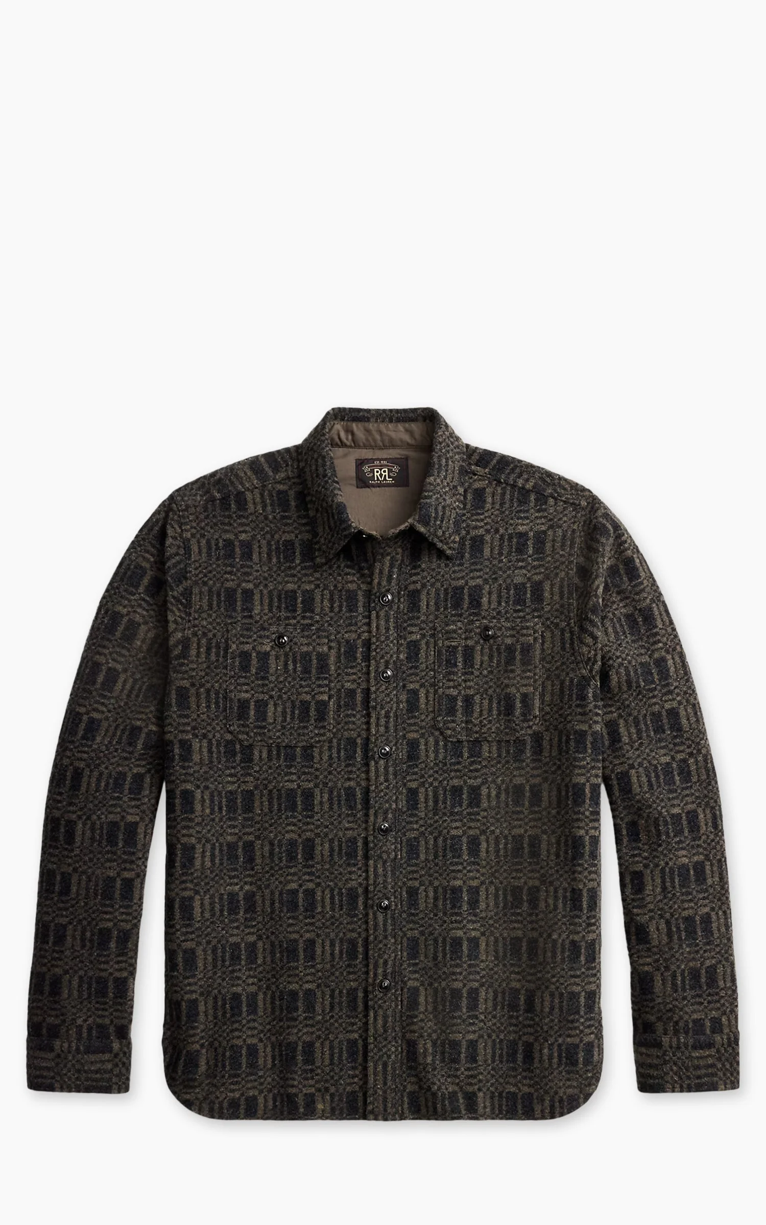 RRL JACQUARD-KNIT WOOL-BLEND WORKSHIRT CHARCOAL/MULTI