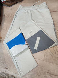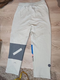 great overall condition, back pocket is still stitched refer to pictures and measurements before buying free worldwide tracked Shipping , 2-4 days to NYC , 1-2 weeks for Asia , couple of days for Europe 1-2 weeks for Australia Straight-leg organic cotton French terry lounge pants in green. Mid-rise. Three-pocket styling. Concealed drawstring at elasticized rib knit waistband. Logo and text embroidered in grey at front. Graphic bonded in multicolor at front and back. Logo embroidered in grey at back cuff. Silver-tone hardware. Supplier color: Chalk 100% organic cotton. I do NOT take returns Missing tags