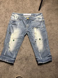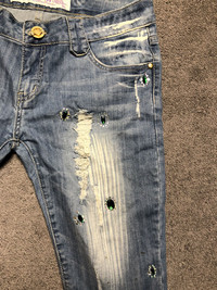 Amazing vintage y2k Rhinestone heart details and distressed denim shorts Repaired around the button area kinda elastic material , cool details free worldwide shipping