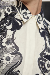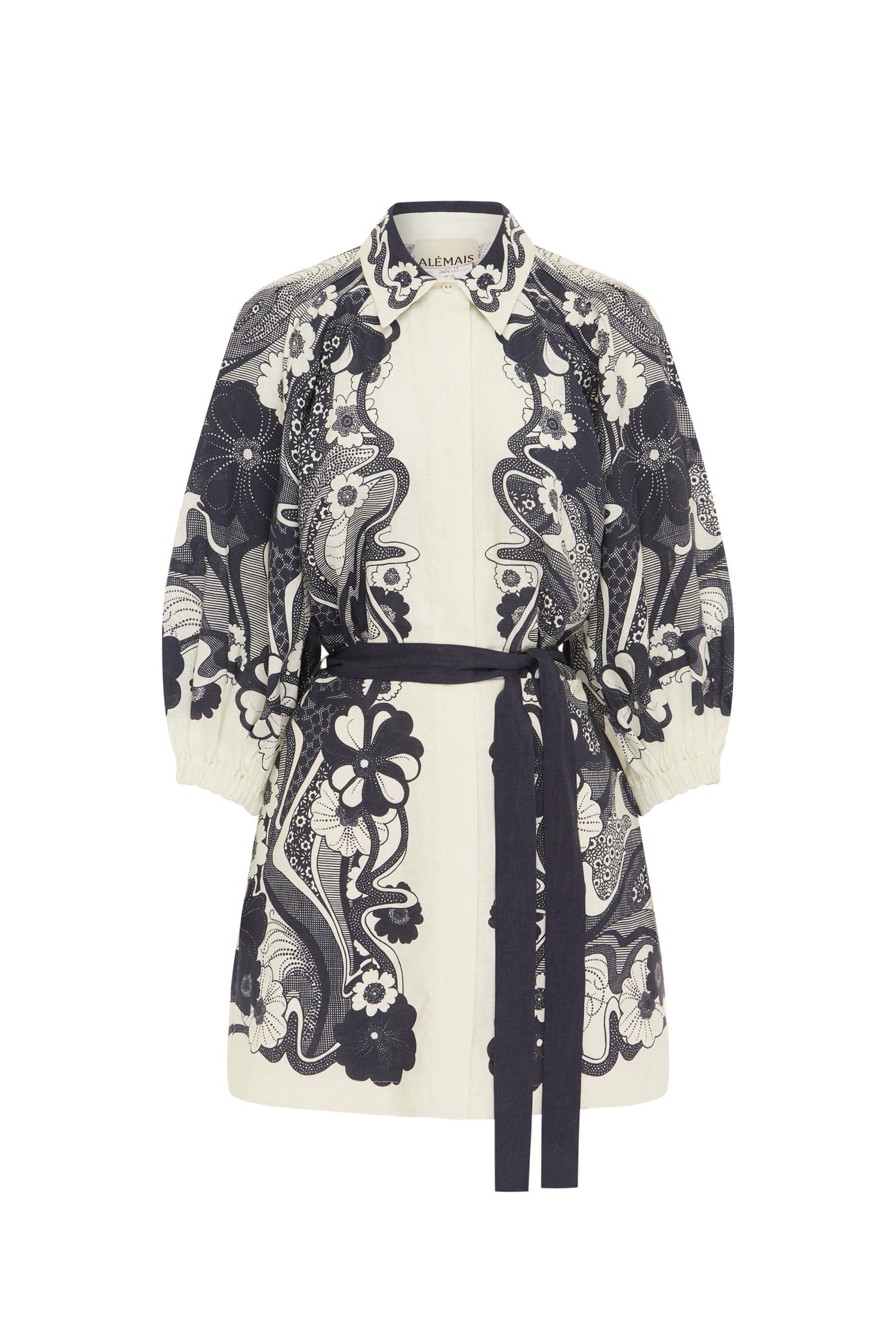 ALEMAIS Mickey Mini Dress - Straight mini shirtdress silhouette - Point collar and stand - Sleeve with tucks and elasticated cuff - Concealed placket with shell buttons - In seam pockets - Skirt is lined - Self-tie belt Composition: 100% European Linen Color: Mickey Size: True to Size
