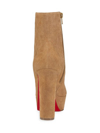 CHRISTIAN LOUBOUTIN Loo Booty Lionne The Loo Booty platform ankle boot elegantly blends simple design with a bold, assertive appeal. It features a tubular silhouette, rounded toe and a chunky, straight 130 mm heel. This Maison Christian Louboutin model is crafted in all-over Lionne Veau Velours. Composition: Veau Velour Color: Lionne Fit: Heel 130mm True to Size