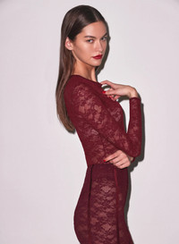 FLEUR DU MAL Le Stretch Lace LS Bodysuit Our Le Stretch Lace Long Sleeve Bodysuit, cut from ultra comfortable 4-way stretch lace for a smooth, seamless finish. Thong cut with long sleeves and back keyhole detail. Take it out layered over the matching Le Stretch Lace Demi Bra and Thong. Composition: 37% Nylon, 29% Recycled Nylon & 34% Spandex Color: Auburn Fit: Model is 5'11 and wearing a size Small.