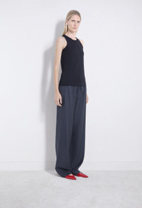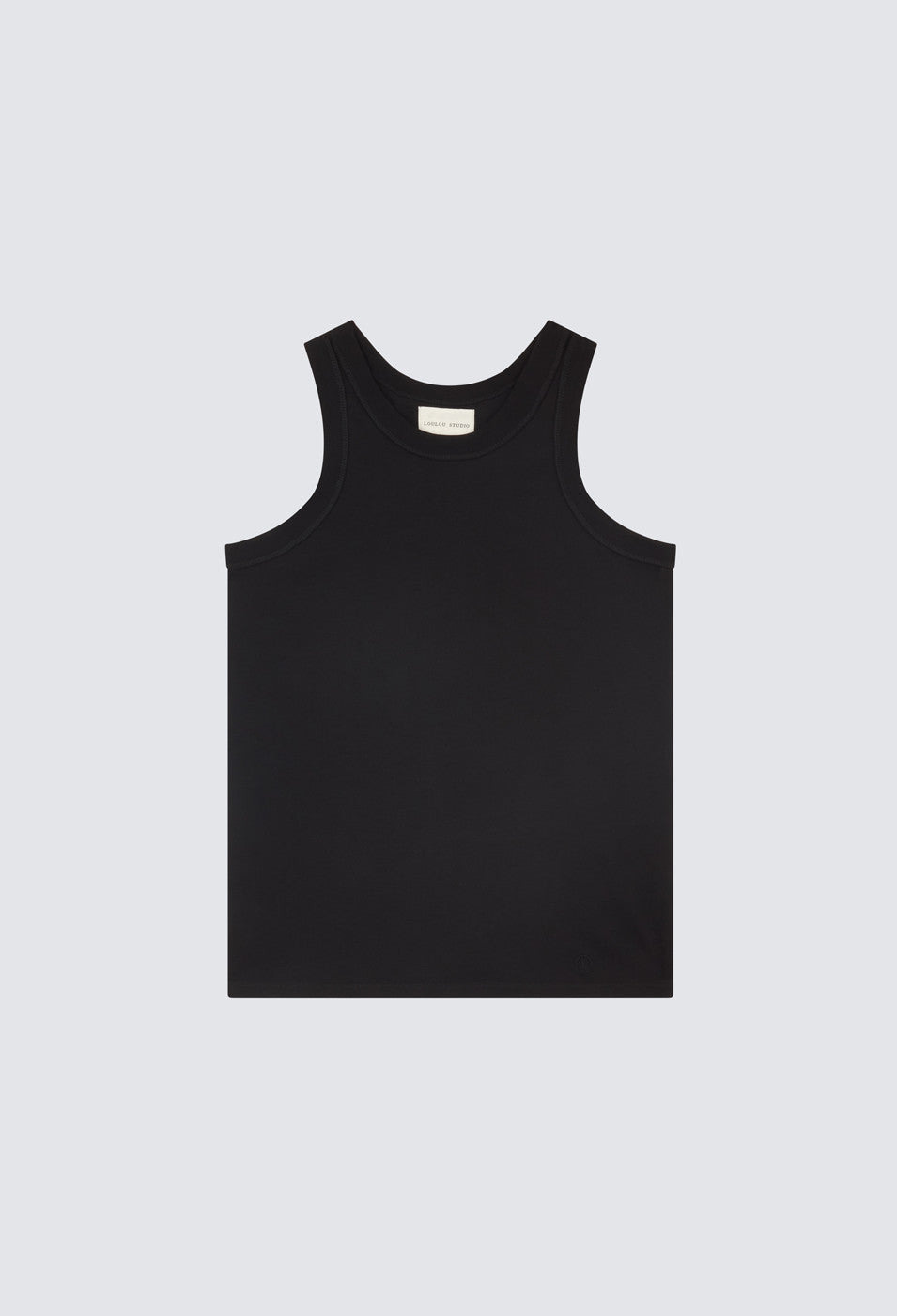 LOULOU STUDIO Poso Tank Top Black This tank top is made of Supima cotton, chosen for its ultra soft, lightweight yet resistant quality. The fit is straight, with a rib neckline and thick straps that accentuate the shoulders. Composition: 100% Supima Cotton Color: Black Fit: True to Size