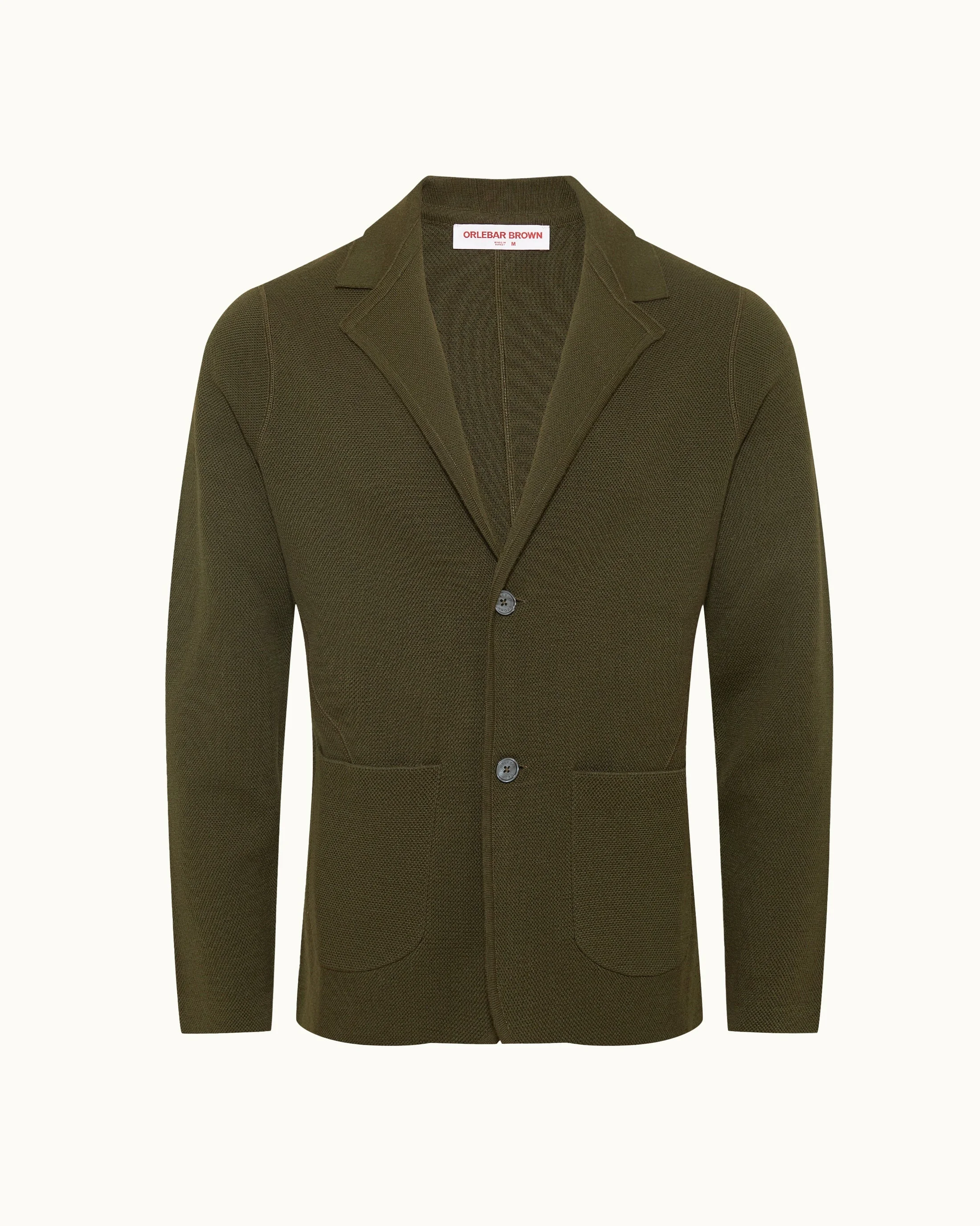 ORLEBAR BROWN Haston OB Stripe Blazer You're up before the village, following the sound of diesel engines warming in the harbour. The fishermen nod as you approach—yesterday's successful haggling over octopus prices apparently earned you dawn privileges. Someone tosses you a rope; you catch it without thinking. Rainer moves with the pre-light bustle. Dark Herbal Green holds its own against the working blues and weathered whites, whilst the pique texture grips without bulk as you help load nets. Lightweight but substantial enough that nobody mistakes you for a tourist with maritime fantasies. The boat captain—yesterday's octopus seller—hands you coffee thick as tar and jerks his chin toward the horizon. "Buona pesca," he says. Good fishing. Whether he means the catch or your presence isn't entirely clear. Twenty minutes out, the sun breaks the waterline, and you understand why they start this early. Feel Summer. Composition: 100% Merino wool Color: Dark Herbal Green Size: Model’s height: 6'2" and wears size M.