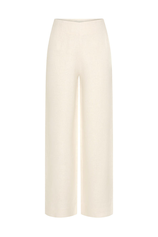 POSSE Noelle Pant Cream Cut from hand-loomed linen, the Noelle Pants are designed to sit comfortably on the high-rise waist, with wide legs that fall just above the ankle. Composition: 100% Linen Color: Cream Fit: Darcy wears a S Height-181cm, Bust-81cm, Waist-63cm, Hips-86cm