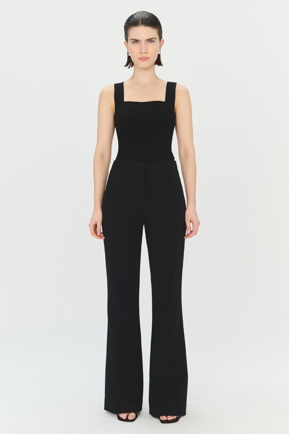SIMKHAI Kenna Trouser Black The Kenna Trouser in Black. Expertly tailored, these pants exude a timeless elegance with their sleek silhouette. Their classic hue and sophisticated design make them an essential staple for any refined wardrobe. Color: Black Fit: True to Size