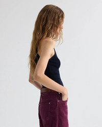 TWP Harbor Tank Racerback tank top in ribbed cotton silk. This fabric is lightweight with a silky hand and sheen. The Harbor is a full-length, fitted top. Fully fashioned at the arm holes and neckline. Composition: 55% Silk 45% Cotton Color: Dark Midnight Fit: True to Size