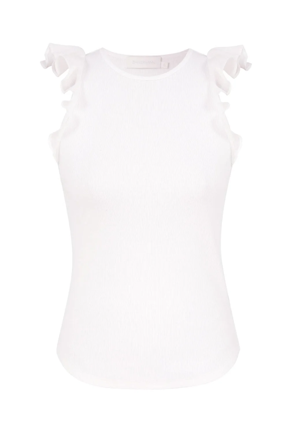 ZIMMERMANN Awaken Frill Tank The Awaken Frill Tank in Ivory from our Resort Swim 2026 Collection. A cotton tank top featuring a crew neckline and frill trim. Composition: Main: 95% cotton, 5% elastane; sleeve: 100% linen Color: Ivory Fit: True to size