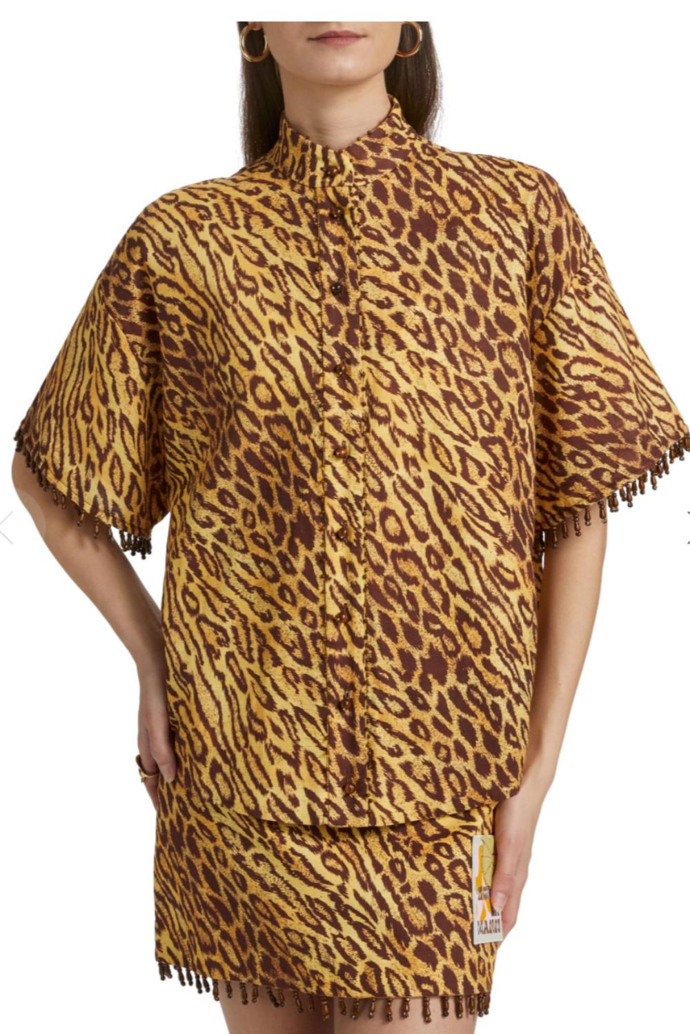 ZIMMERMANN Coco Beaded Fringe Shirt Composition: Color: Leopard Size: True to size