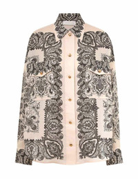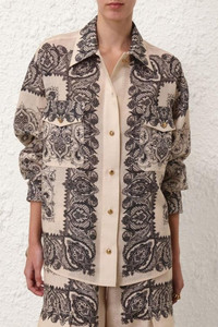 ZIMMERMANN Utility Pocket Shirt Tea Paisley The Utility Pocket Shirt in Tea Paisley from our Fall 2024 Collection, In Illustration. A long sleeve blouse featuring a utility silhouette, chest pockets and a classic collar; finished with buttoned cuff sleeves. Utility Blouse, Classic collar, Buttons down the center front, Long sleeves, Functional chest pockets. Composition: 100% Ramie Color: Tea Paisley Fit: True to Size