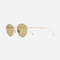 Lightness and functionality are the core tenets of the AUSN 0001. Ultra-fine design elements such as slimline lugs and the Swiss alloy construction - available plated in either 18K White Gold Rhodium, 18K Gold, 18K Rose Gold, or a combination of precious metals Rose Gold 18K + Rhodium 18K. Retro sun lens colourways are muted and subtle as not to detract from the natural lustre of the precious metal plating. Details - Handcrafted in Italy by expert craftspeople, read more about our craftsmanship story - New Temple Tip inscribed with 'Aurum' - Hypoallergenic Nosepads - Galvanised Precious Metal Finish - Need help? Read our full Glossary of Terms Size & Fit SKU: AUSN-0001-48-02 Frame shape: Round Temple length (mm): 145 Lens width (mm): 48 Bridge width (mm): 21