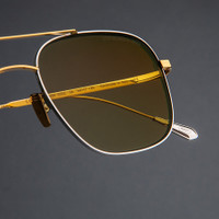 Available plated in either 18K White Gold Rhodium, 18K Gold, 18K Rose Gold, or a combination of precious metals and Yellow Gold 24K + Rhodium 18K the AUSN 0003 elevates a classic Cutler and Gross shape first popularised in the 1970s. Featherlight in its construction, the flatline temple provides a slimline silhouette without compromising on visual impact and the muted ZEISS Sunlens colourways of Solid Brown, Khaki Blue and Grey emphasise the precious metal tones. Details - Handcrafted in Italy by expert craftspeople, read more about our craftsmanship story - New Temple Tip inscribed with 'Aurum' - Hypoallergenic Nosepads - Galvanised Precious Metal Finish - Need help? Read our full Glossary of Terms Size & Fit SKU: AUSN-0003-54-04 Frame shape: Aviator Temple length (mm): 145 Lens width (mm): 54 Bridge width (mm): 17