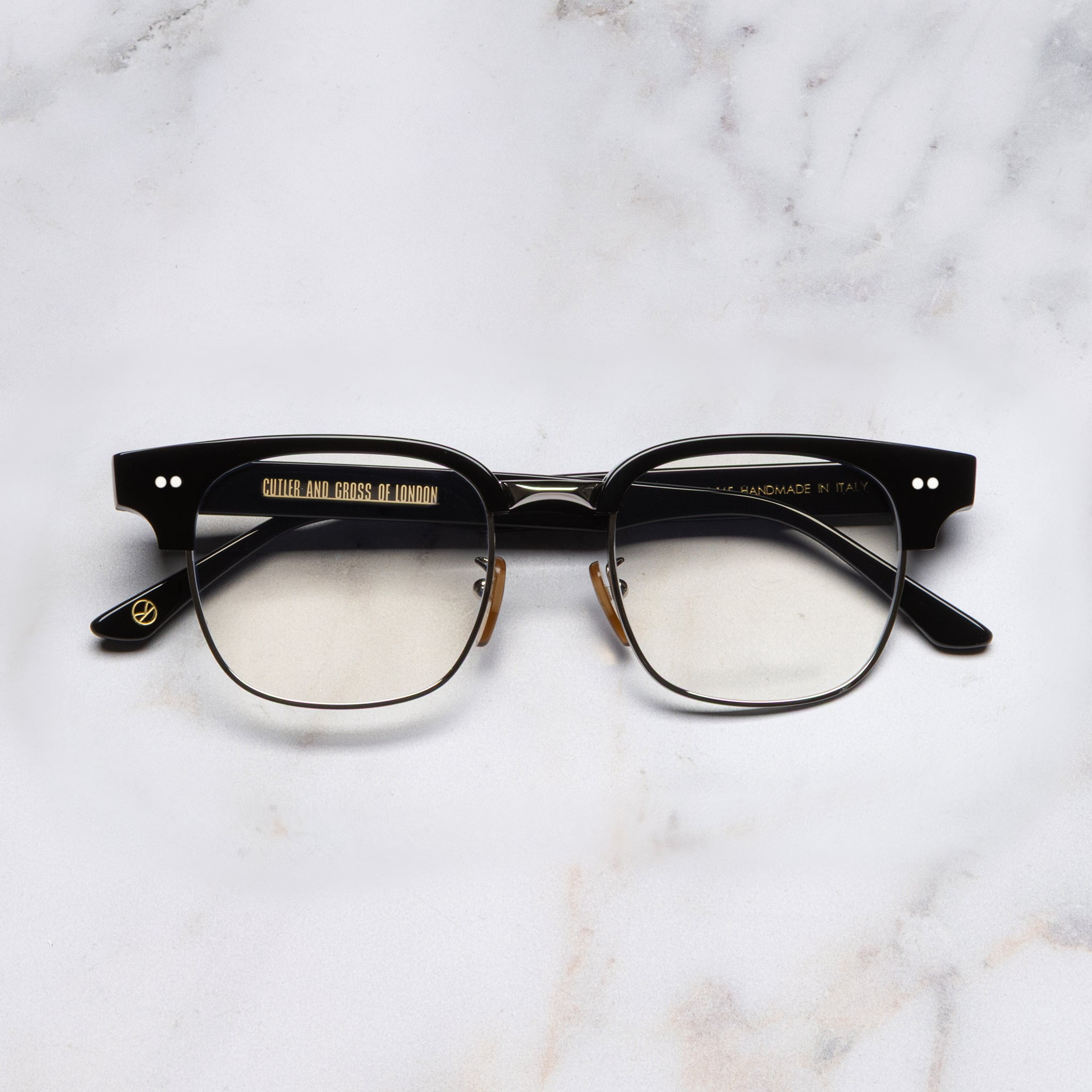 Created in collaboration with Kingsman, the 0004 optical combines unprecedented craftsmanship with gravitas and silver-screen appeal. It is handmade from gleaming metal and acetate to a distinguished shape inspired by combination frames from the 1950s. Worn by British actor Mark Strong in the 'Kingsman' film franchise. Details - The Kingsman collaboration - Vintage frontal and temple pins - Winged lugs - Adjustable nose pads - 5-barrel hinges - Gold-foil logos on inner temples - Handcrafted in Italy by expert craftspeople, read more about our craftsmanship story - Need help? Read our full Glossary of Terms Size & Fit SKU: KMOP-0004-48-01 Frame shape: Round Lens width (mm): 48 Temple length (mm): 145 Bridge width (mm): 19