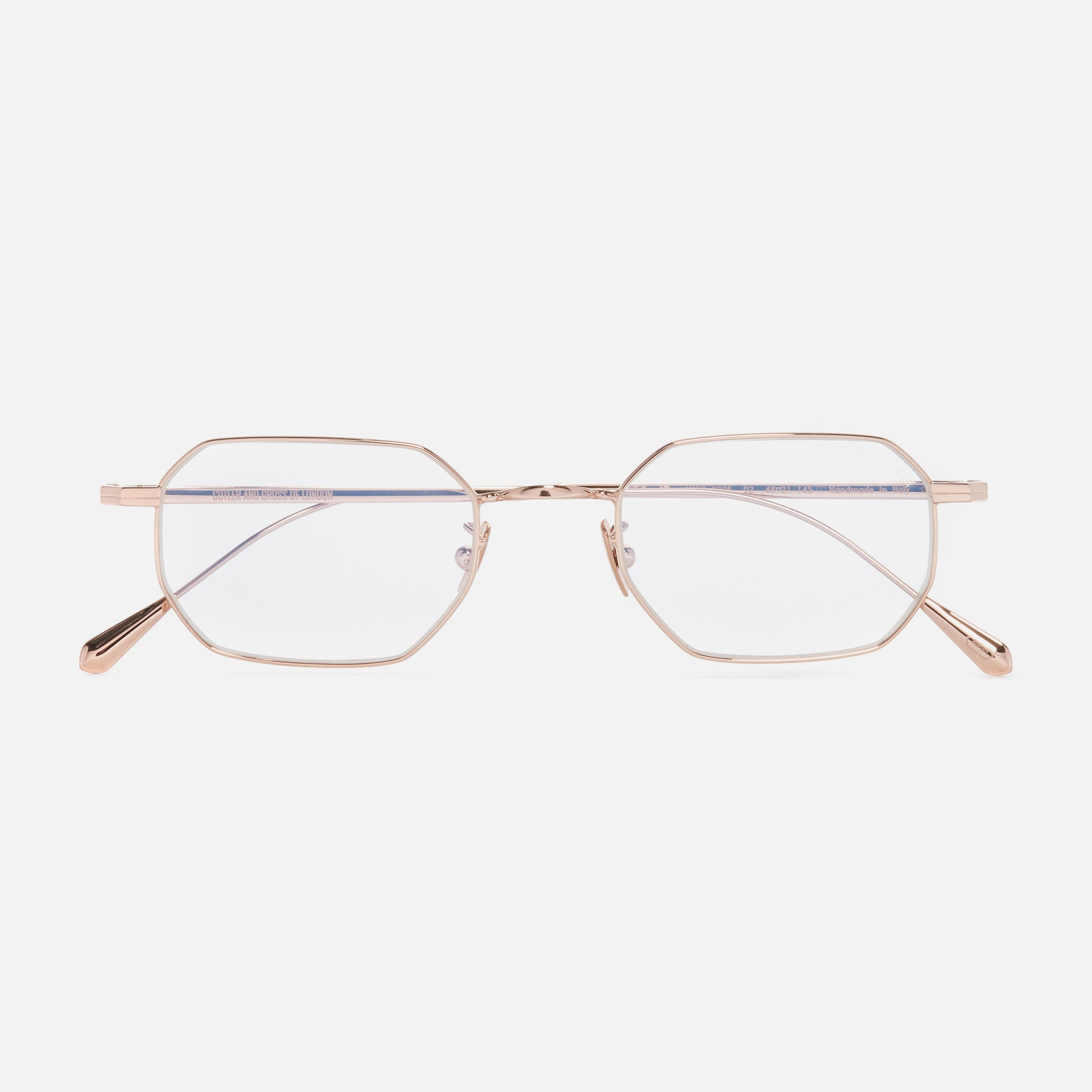 The hexagonal 0005 optical is grounded in our 1990s archive, shaped to a slender profile with a double-curved nose bridge. Rounded corners and high-set lugs lend dimension to the design, which is crafted from ultra-light precious metals. Available in 18K White Gold Rhodium, 18K Gold,18K Rose Gold, and a combination of 24K Yellow Gold and 18K Rhodium. Details - Handcrafted in Italy by expert craftspeople, read more about our craftsmanship story - Double-curved nose bridge - Adjustable nose pads - Engraved logo inside temple - Need help? Read our full Glossary of Terms Size & Fit SKU: AUOP-0005-48-02 Frame shape: Round Lens width (mm): 48 Temple length (mm): 145 Bridge width (mm): 21