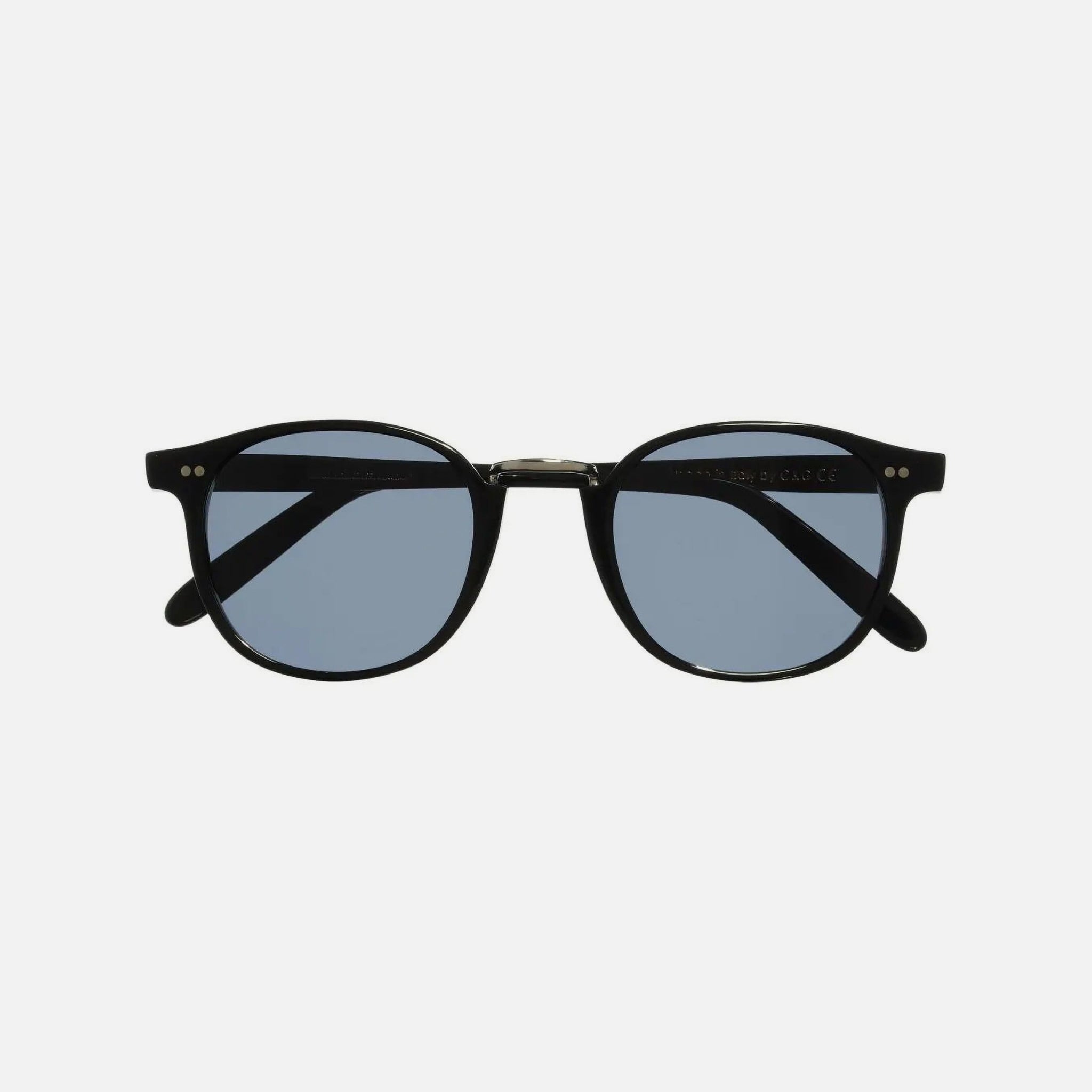 The 1007 sunglasses are an elevated take on the classic round design. Presented here with a single nose bridge crafted from metal while the rest of the frame welcomes an all Black acetate construction. Details - Unique metal bridge construction - Hand riveted hinges - Handcrafted in Italy Size & Fit Frame width: 145 mm Bridge width: 23 mm Temple length: 145 mm Lens width: 50 mm