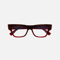 Square lugs and a dipped nose bridge add architectural detail to the 1379. The cat-eye inspired frame features blue-light lens technology to protect your eyes when using digital devices. Details - 5 barrel hinges - Blue light blocking lenses technology by Divel - Patterned temple cores specific to Cutler and Gross - OBE screws using ISS Injection Safety Screw technology with Akulon® central core - Handcrafted in Italy - SKU: CGBB-1379-54 Size & Fit Size: Medium Frame width: 150 mm Temple length: 145 mm Lens width: 54 mm Bridge width: 16 mm Bridge fit: Narrow Size Guide. Find your size and fit. Face shape: Square, round, oval Discover the Face Shape Guide.