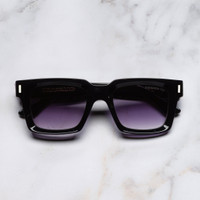 A Cutler and Gross signature, the 1386 sunglass presents an amplified take on American acetate shapes from the 50s. The chunky 9mm frame is gilded with vintage pins and lightened with interior and exterior milling. Details - 100% UVA and UVB lenses - 1950s frontal and temple pins - 5-barrel hinges - Fretboard core wire - Gold-foil logo on inner temple - Handcrafted in Italy by expert craftspeople, read more about our craftsmanship story Size & Fit SKU: CGSN-1386-52-10 Frame shape: Square Frontal width (mm): 153 Temple length (mm): 145 Lens width (mm): 52 Bridge width (mm): 21