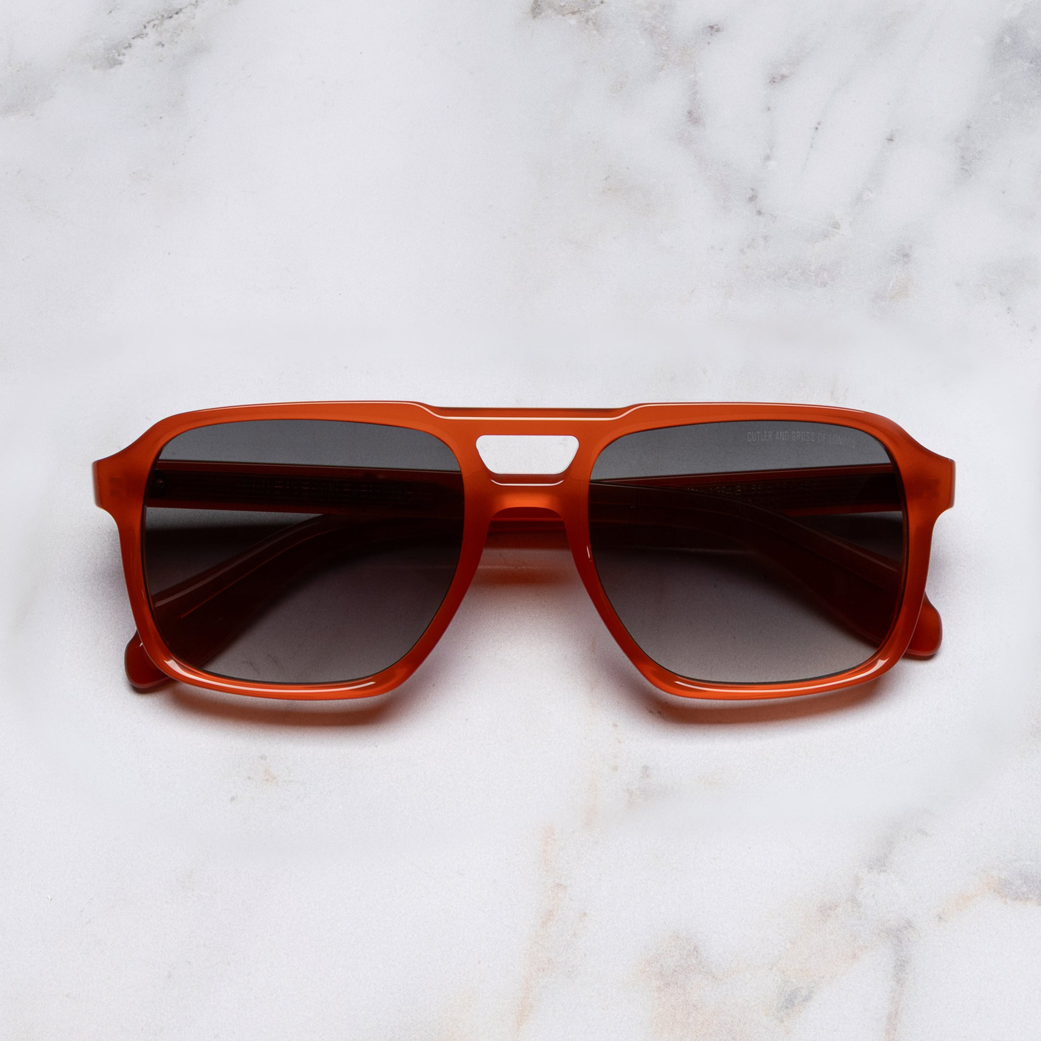 An archive Cutler and Gross frame from the 70s laid the foundations for the 1394 sunglass. It is handcrafted from acetate to a distinguished profile with squared lenses and a double bridge. Polished Compass Star pins detail the temples. Details - 100% UVA and UVB lenses - Handcrafted in Italy by expert craftspeople, read more about our craftsmanship story Size & Fit SKU: CGSN-1394-55-B1 Frame shape: Aviator Frontal width (mm): 154 Temple length (mm): 150 Lens width (mm): 57 Bridge width (mm): 19