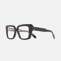 A squared take on the cat-eye, the 1401 optical is shaped with a straightened browline that culminates in angled lugs. Polished Compass Star pins and Hazard core wire add subtle Cutler and Gross prestige. Details - Compass Star frontal and temple pins - 5-barrel hinges - Fender temples - Hazard core wire - Gold-foil logo on inner temple - Handcrafted in Italy by expert craftspeople, read more about our craftsmanship story Size & Fit SKU: CGOP-1401-51-01 Frame shape: Cat-Eye Lens width (mm): 51 Temple length (mm): 145 Bridge width (mm): 19