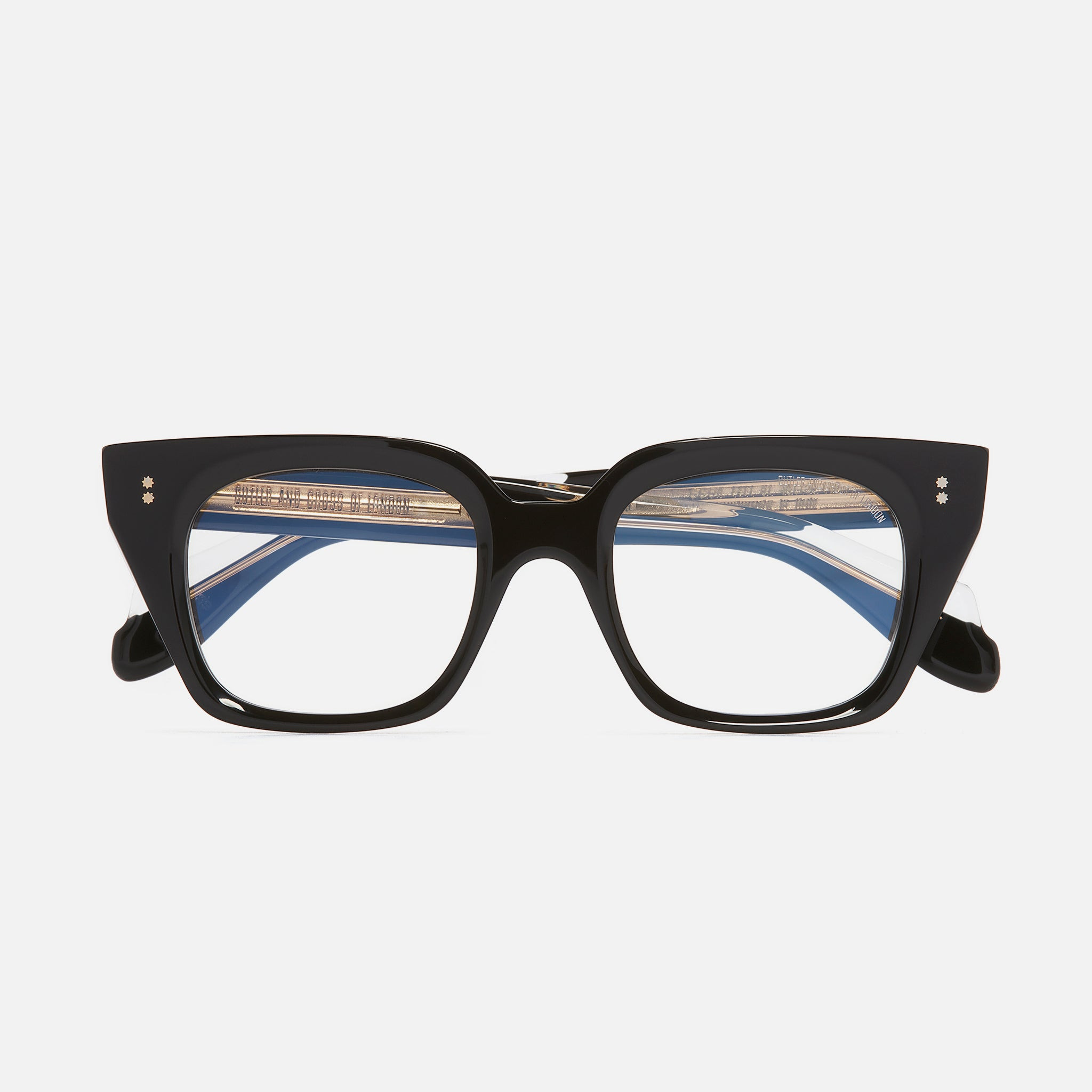 Square, angular frames worn in 1960s cinema set the scene for this optical. It is handcrafted with a straight browbar and slanted lugs, creating the impression of a genderless cat-eye. Chamfering adds depth to the design, which is threaded with this season's Modernist core wire. Details - Compass Star frontal and temple pins - 5-barrel hinges - Modernist core wire - Fender temple tips - Gold-foil logo inside temple - Handcrafted in Italy by expert craftspeople, read more about our craftsmanship story Size & Fit SKU: CGOP-1411-48-01 Frame shape: Cat Eye Lens width (mm): 48 Temple length (mm): 145 Bridge width (mm): 20