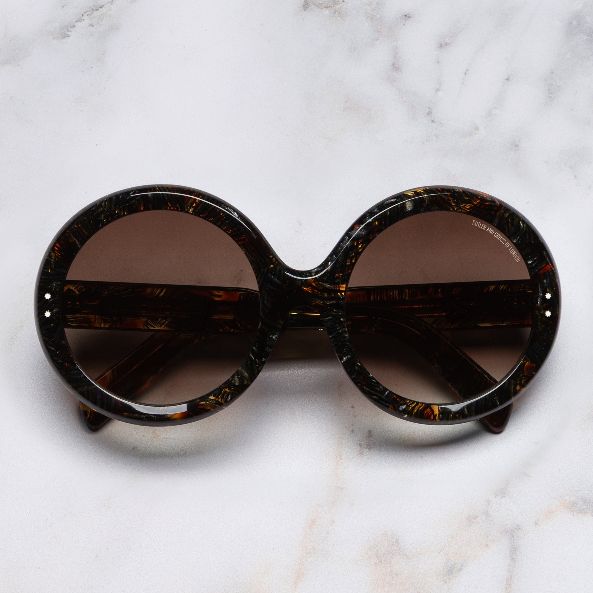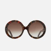 The 1412 is a feat of ingenuity and artistry, handcrafted with highly specialised milling that enables the rivets to hug the lenses. The alluring, perfectly round silhouette looks to archive Cutler and Gross frames from the 70s. Details - 100% UVA and UVB lenses - Compass Star frontal and temple pins - 5-barrel hinges - Plectrum temples - Modernist core wire - Gold-foil logo on inner temple - Handcrafted in Italy Size & Fit Frame width: 155 mm Bridge width: 23 mm Temple length: 145 mm Lens width: 59 mm