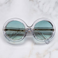 Exquisite crystal acetate and gradient blue lenses nod to LA's sun-drenched cityscape. This Limited Edition round sunglass design is immaculately made with 18K Rose Gold-plated metalwork, which comes to light in the Compass Star pins, Modernist core wire, and barrel hinges. Details - 100% UVA and UVB lenses - 18K Rose Gold-plated Compass Star frontal and temple pins - 18K Rose Gold-plated 5-barrel hinges - Plectrum temples - 18K Rose Gold-plated Modernist core wire - Gold-foil logo on inner temple - Handcrafted in Italy Size & Fit Frame width: 155 mm Bridge width: 23 mm Temple length: 145 mm Lens width: 59 mm