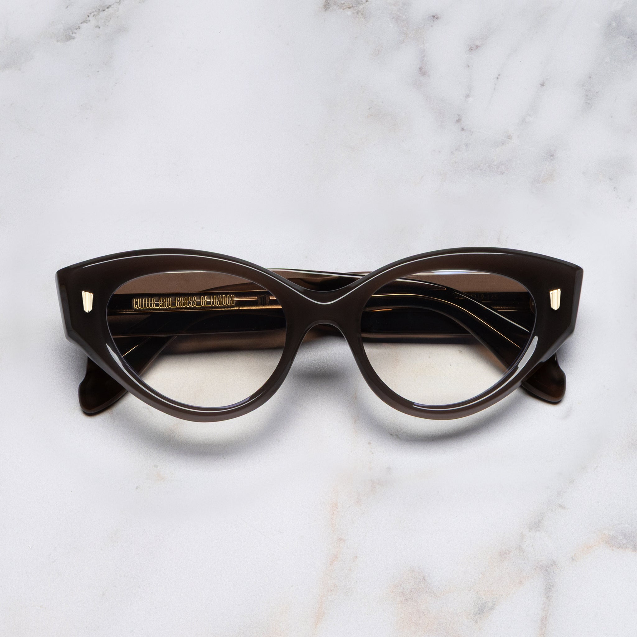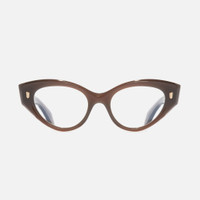 The cat-eye has been a Cutler and Gross centrepiece since the 70s, and this frame continues the evolution. It is shaped to a butterfly silhouette that balances a slim nose bridge with chunky temples, and detailed with Oyster and Compass Star pins. Details - Oyster frontal pins - Compass Star temple pins - Compass Star temple pins - 7-barrel hinges - Fender temples - Modernist core wire - Gold-foil logo on inner temple - Handcrafted in Italy by expert craftspeople, read more about our craftsmanship story - Need help? Read our full Glossary of Terms Size & Fit SKU: CGOP-1417-51-03 Frame shape: Cat Eye Lens width (mm): 51 Temple length (mm): 145 Bridge width (mm): 19