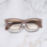 Beloved by the 1950s glitterati, the cat-eye is frozen in time on the silver screen and paparazzi shots from Palm Springs. The 9241 optical celebrates its glamorous past while ushering in a new present, sculpted with a curved browbar that dips down into a minimalist bridge. Details - Compass Star frontal and temple pins - 5-barrel hinges - Modernist core wire - Fender temple tips - Gold-foil logo inside temple - Handcrafted in Italy by expert craftspeople, read more about our craftsmanship story Size & Fit SKU: CGOP-9241-52-03 Frame shape: Cat Eye Lens width (mm): 52 Temple length (mm): 145 Bridge width (mm): 16