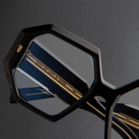 Sculpted to a maximalist octagonal design, the 9324 optical pays homage to the cinematic allure of Sophia Loren and 1950s Hollywood. It is handcrafted with unprecedented 25mm-thick temples and lightened with chamfered crystal edges. This season's Modernist core wire structures the temples Details - Oyster frontal pins - Compass Star temple pins - 7-barrel hinges - Modernist core wire - Desert temple tips - Gold-foil logo inside temple - Handcrafted in Italy by expert craftspeople, read more about our craftsmanship story Size & Fit SKU: CGOP-9324-56-01 Frame shape: Square Lens width (mm): 56 Temple length (mm): 145 Bridge width (mm): 19