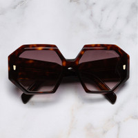 A maximalist sunglass that pays homage to the cinematic allure of Sophia Loren and 1950s Hollywood. The octagonal design is handcrafted with unprecedentedly thick 25mm temples, and lightened with chamfered edges. It is detailed with our signature Oyster pin and threaded with this season's Modernist core wire. Details - 100% UVA and UVB lenses - Oyster frontal pins - Compass Star temple pins - 7-barrel hinges - Modernist core wire - Desert temple tips - Gold-foil logo inside temple - Handcrafted in Italy by expert craftspeople, read more about our craftsmanship story Size & Fit SKU: CGSN-9324-56-02 Frame shape: Square Temple length (mm): 145 Lens width (mm): 56 Bridge width (mm): 19