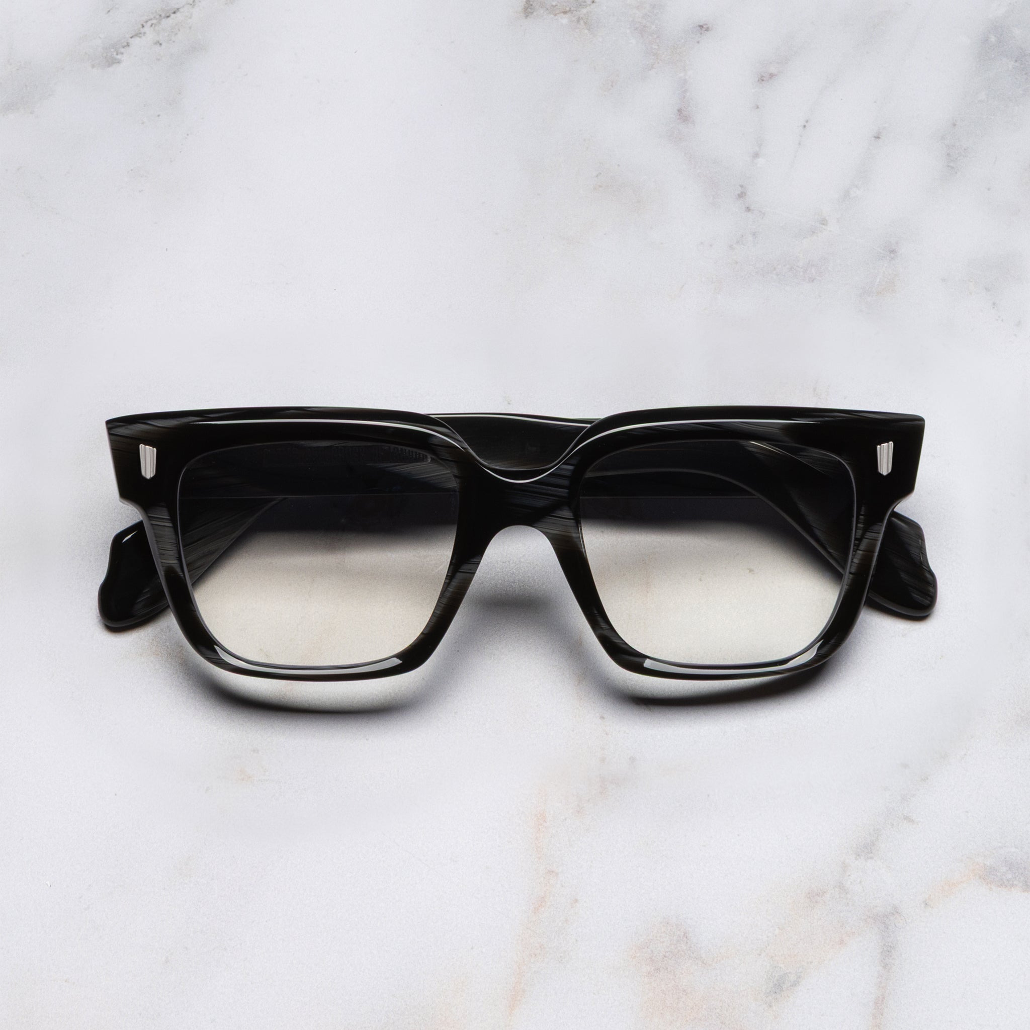 A high stepped browline adds individuality to the 9347 optical. It's handcrafted to an oversized square silhouette that's softened with rounded edges and bevelling. Polished Oyster pins mark the winged lugs, while Hazard core wire strengthens the temples. Details - Handcrafted in Italy by expert craftspeople, read more about our craftsmanship story - Vertical Oyster frontal pins - 5-barrel hinges - Compass Star temple pins - Hazard core wire - Gold-foil logo inside temple - Fender temple tips - Need help? Read our full Glossary of Terms Size & Fit SKU: CGLO-9347-50-01 Frame shape: Square Lens width (mm): 50 Temple length (mm): 145 Bridge width (mm): 19